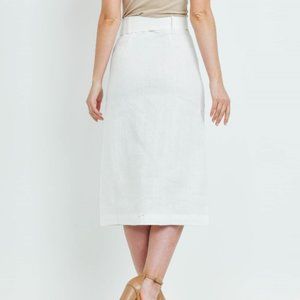 Belted Linen Button Skirt off white