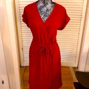 Belted Red Faux Wrap Dress with Pockets Vacation or Beach 🏖 by Universal Thread