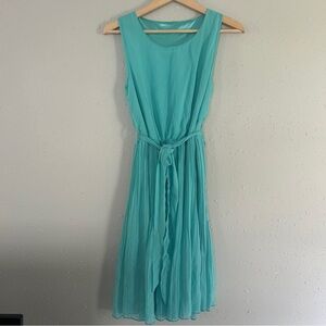 Belted Sleeveless Turquoise Teal Mini Dress Pleated Casual Small Summer