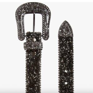 β’ Hematite crystal buckle on black belt (other colors feature clear crystals)