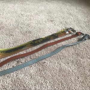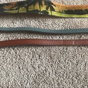 Three belts. The thin belts are 39 1/2” long. The sunset belt is 45” long.