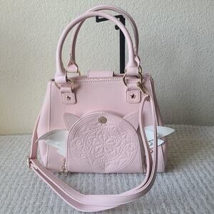 Beluga Design Sakura Purse Shoulder Bag. Preowned. Minor wear. Cute Pastel Pink Kawaii Girls Women Crossbody Shoulder Bag. Dual Handles. Adjustable Strap. Zipper Closure. Bag Feet.