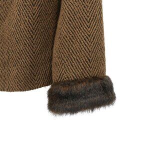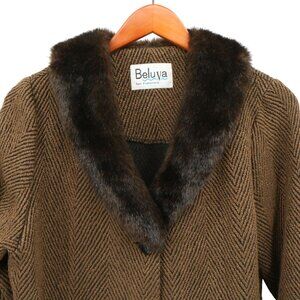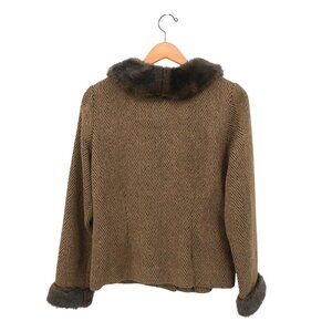 Beluva San Francisco Faux Fur Trim Brown Chevron Pattern Jacket M