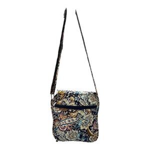 Belvah Paisley Print Crossbody Quilted Bag Purse Navy Blue Yellow Medium