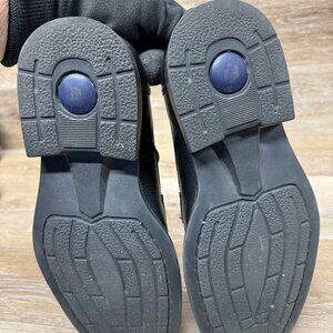 Elevate your style with these Belvedere Studio Bay Bridge pebbled leather oxfords in men's size 10D. These shoes feature a solid pattern with a round toe and lace-up closure, making them perfect for any occasion. The black leather upper material is accented with laces and a split toe for added style. These dress shoes are comfortable and supportive, with arch support, cushioning, and slip-resistant features. The Belvedere Bay Bridge model is designed for durability and water resistance, making them ideal for year-round wear. Whether you're a hipster, Italian, or preppy dresser, these shoes will add a touch of elegance to your wardrobe.