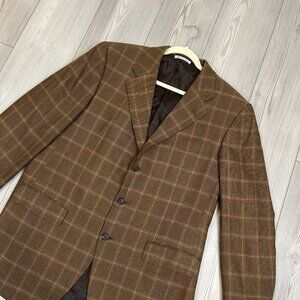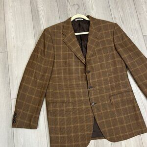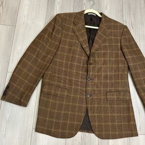 Belvest Italian Wool Cashmere Blazer Size US 44R Brown Lined 3 Button Closure