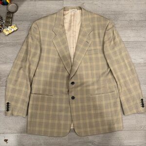 Belvest Made in Italy Wool Silk Blend Plaid Check Jacket Size 56