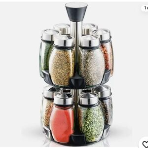 culinary cooking spice jar rack glass season seasoning flavor flavorful organize organizer storage kitchen food meal prep tools utensils speed efficiency clear spin accessible made easy revolving clear home edit