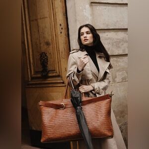 NWOT stunning woven leather traveler duffle from Bembien 🤎