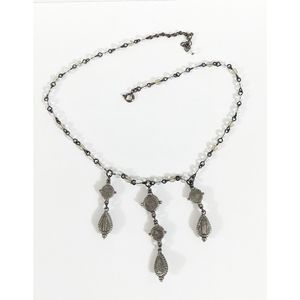 Beaded and silver toned rhinestone dangle necklace