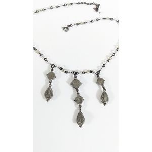 Ben Amun Crystal Dangle Necklace Silver Toned White Colorless Beads Rhinestones