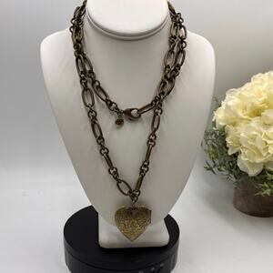 Ben Amun Designer Antique Brass Etched Heart Locket Link Long Necklace