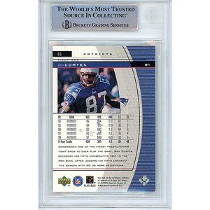 New England Patriots 1999 Upper Deck Black Diamond Football trading Card #65, hand signed by 5-Time NFL Pro Bowl Selection Ben Coates. Ben Coates autographed the trading card in black sharpie. This autograph is a clean, well placed signature that really pops nicely off of this collectible, which has been authenticated and encapsulated by Beckett Authentication Services (BAS).