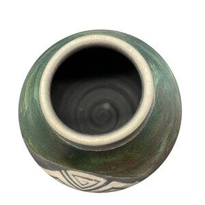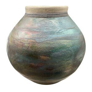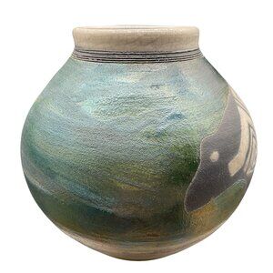 This handcrafted ceramic vase by Ben Diller features a unique Native American design. It presents an artistic blend of colors, adding elegance to any décor. The vase, crafted in 2004, exemplifies high-quality artistry and is an ideal piece for collectors or as a centerpiece in a sophisticated space.