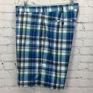 Ben Hogan Golf Shorts Men's Size 38 Blue Multicolor Plaid Chino Flat Front Sport