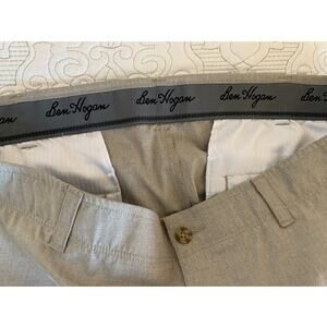Elevate your golf game with these Ben Hogan men's size 38 performance golf shorts. These shorts feature a flat front, mid-rise design with a 10-inch inseam and a khaki heather pattern. The closure includes both a zip and button for added security. These shorts are perfect for travel, casual or sporting occasions and are made from a lightweight, stretchy blend of polyester and elastane fabric. The slash pockets provide ample space for your golf essentials, while the Ben Hogan brand ensures quality and style. Make an offer!