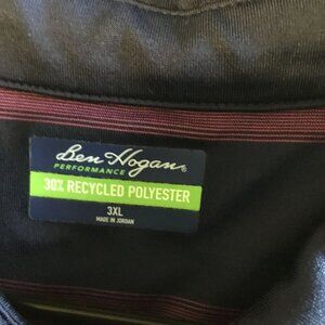 ITEM: Ben Hogan Performance men's 3-button golf striped polo shirt fully lined.