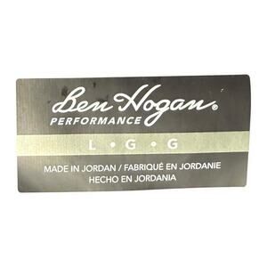 The Ben Hogan Performance Polo is a stylish and versatile men's golf shirt in size Large and gray color. This collared button-down shirt is made from a blended fabric of polyester and recycled polyester, making it easy to care for and suitable for various occasions including travel, activewear, parties, and casual outings. The shirt features accents like buttons, sleeve logos, and a solid pattern with the character of Ben Hogan, perfect for golf enthusiasts looking for a classic and sporty look on the course. Designed for regular fit and with short sleeves, this polo is a wardrobe essential for any golf lover.