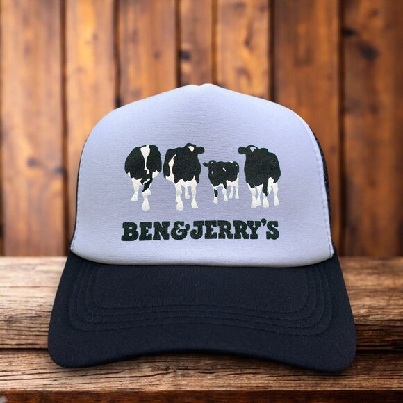 Ben & Jerry's Ice Cream Logo Mens Trucker Hat Black Snapback Vermont Cap