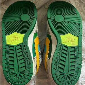 Eye-catching Nike sneakers with a vibrant mix of blue, yellow, and black. Perfect for playful adventures.