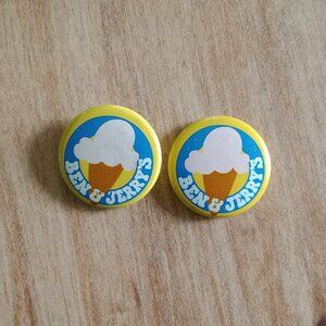 Vintage...1978...Collectible... 2pc...Ben & Jerry's Pins...1" round...color lith on metal...from the Burlington, Vermont location...pre-loved ...good condition.
