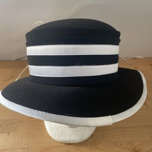 Ben Marc Hat Black & White Derby Dress Church Structured Hat w Satin 3D Flower
