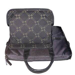 Functionality meets style with this briefcase's padded feature, providing extra protection for your device during transit. Its well-structured design and high-quality material promise to keep your essentials organized and within reach. Lined, padded, many pockets and padded inner dividers. Durable metal Hardware. Adjustable padded strap for comfort. Brand new with tags! MSRP $250