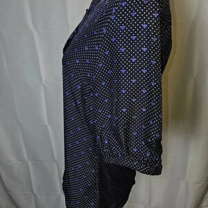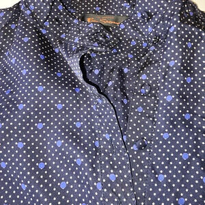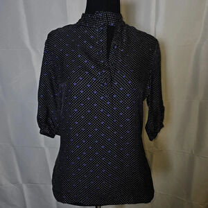 Ben Sherman 100% Silk Navy Blue / White Polka Dot Womens Blouse SZ SMALL