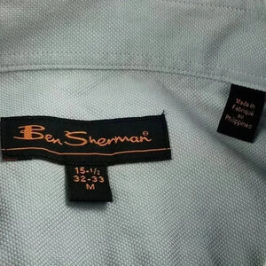 Ben Sherman 15.5 32-33 Medium Men's White Black Gray Trim Stripe Cotton Shirt