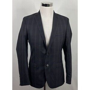 Ben Sherman 38R Camden Sport Coat Tailored Skinny Fit Gray Plaid Two Button