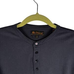 Ben Sherman Black Waffle Cotton Blend Short Sleeve Button Up Top Sz 3 Medium