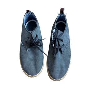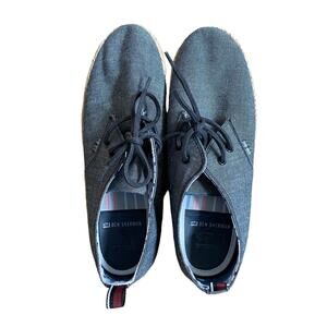 Ben Sherman Lace Up Loafers in blue canvas with woven soles, perfect for a casual yet stylish look. These men's size 10 loafers are in good pre-owned condition, showing only wear to the bottoms. Grab these comfortable and fashionable shoes for a great price!