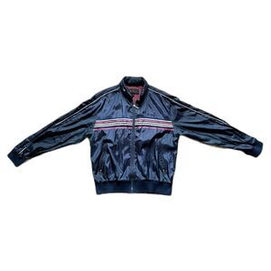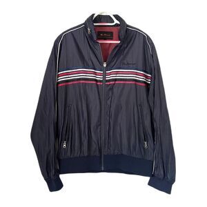 Ben Sherman Blue Satin Retro Stripe Full Zip Mod Bomber Jacket Mens Size Large