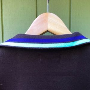 2 stripes on collar, dark and light blue (shown in 3rd, 4th, and 6th pictures)