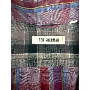 Ben Sherman Contrasting Flip Cuffs Gauzy Flannel Plaid Lined Cotton Shirt Mens L