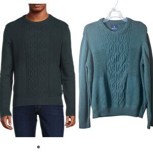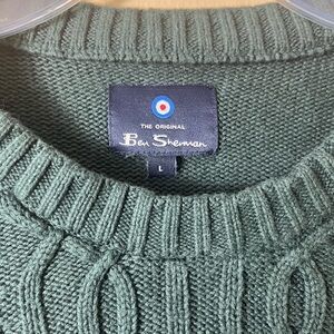 Ben Sherman Green Cable Knit Crewneck Cotton Sweater Size Large Fisherman