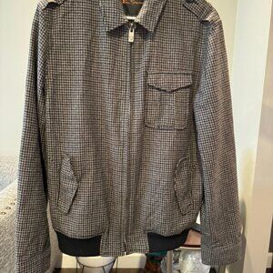 Ben Sherman Herringbone Military Mens Jacket Medium Houndstooth Gray Blue
