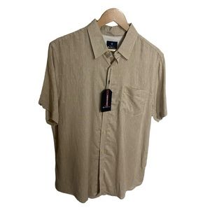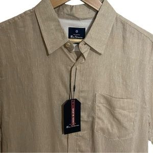 Ben Sherman Khaki Linen Blend Short Sleeve Casual Button Front Shirt