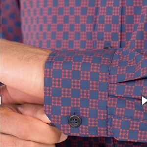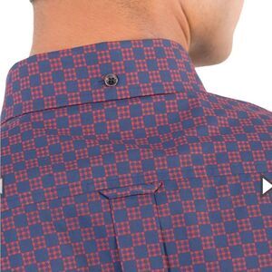 The printed checkerboard pattern is right in line with Ben Sherman's classic prints. The button-down collar and contrast-trim fabric will make this one of your favorite shirts this season. Chest pocket, button cuffs. Mod fit.