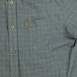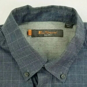 Ben Sherman Medium Men's Charcoal Gray White Trim Check Pocket Logo Button Down