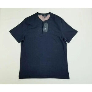 Ben Sherman Medium Regular Fit Henley Embroidered Logo Navy Blazer Short Sleeve