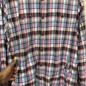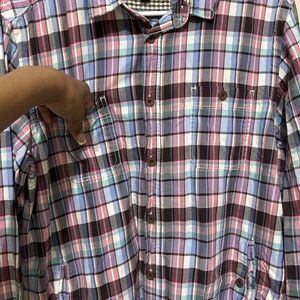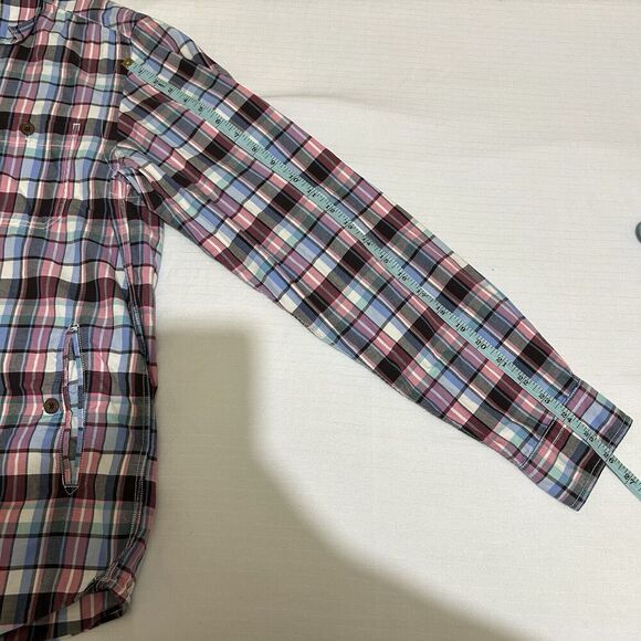 Ben Sherman Mens Button Front Long Sleeve Cotton Pink Blue Plaid Shirt Large L