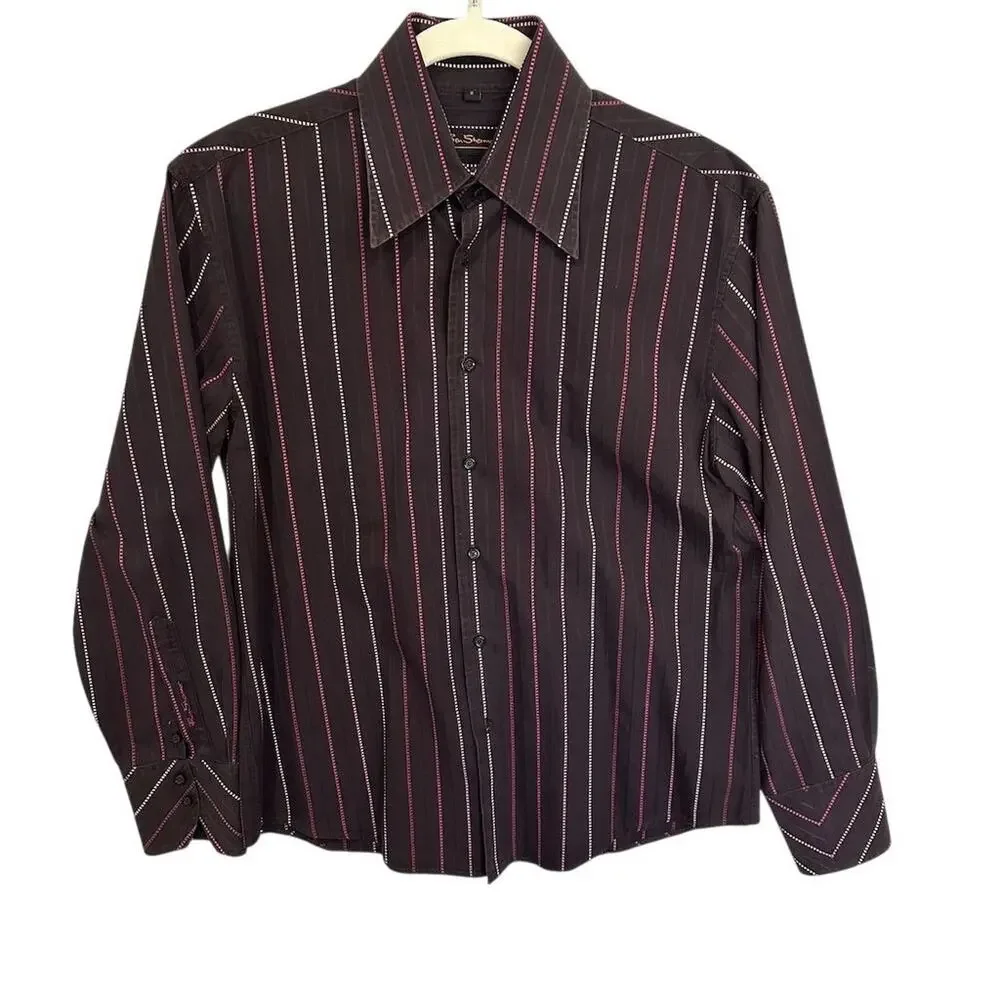 Ben Sherman Men's M purple Red Striped Long Sleeve Button-Up Shirt