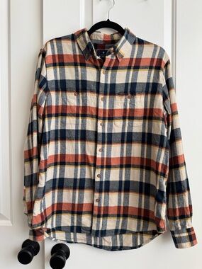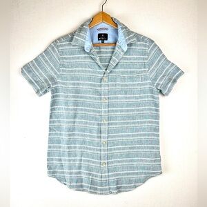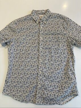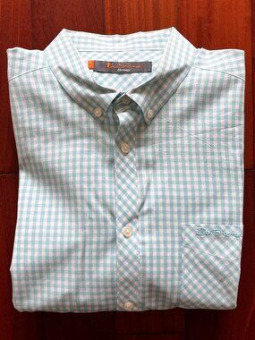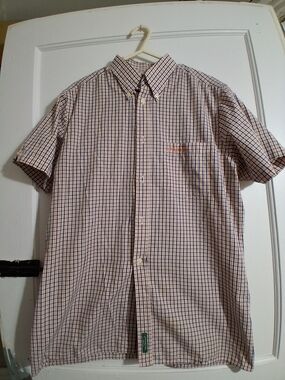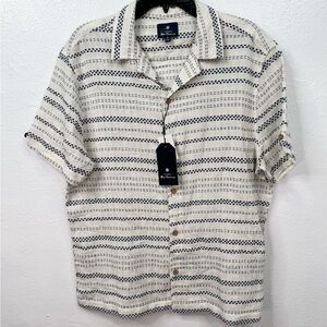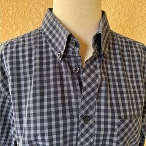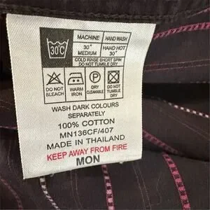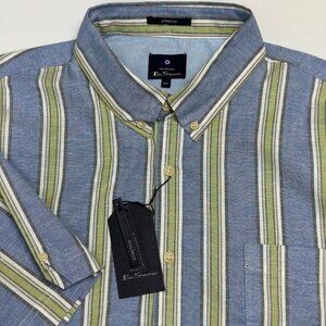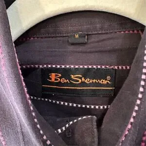 This Ben Sherman men's button-up shirt in black features a classic striped pattern and is made from 100% cotton. It has a standard fit with long sleeves, button cuffs, and a front button-up closure. The shirt is designed for casual occasions and is suitable for fall. It is machine washable and manufactured in Thailand. The chest size measures 42 inches. This item is pre-owned.