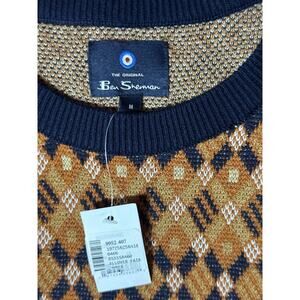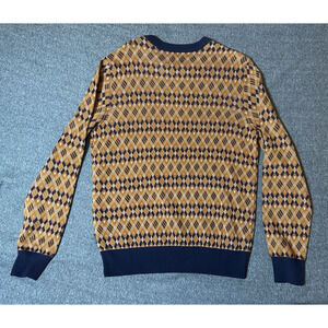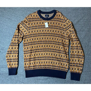 Ben Sherman Mens Medium Tan Blue Geometric Crew Neck Sweater Pullover NWT 80s