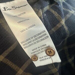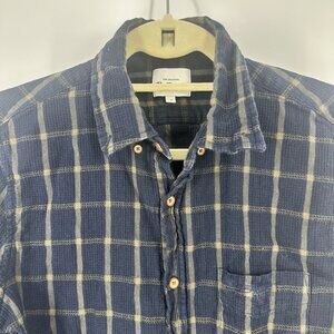 Ben Sherman Mens Navy & Beige Plaid Long Sleeve Button-Down Shirt M 100% Cotton