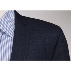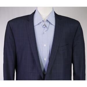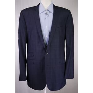 Ben Sherman Mens Navy Blue Purple Plaid 2-Btn Wool Blazer Jacket 44L
