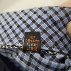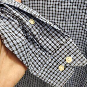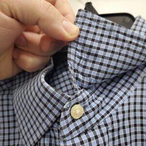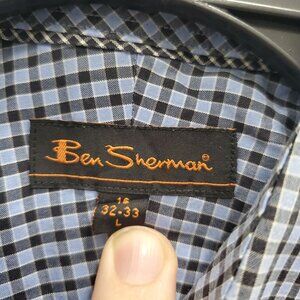 Ben Sherman Men's Navy Blue Small Plaid Cotton Long Sleeve Button Up L 16 32-33