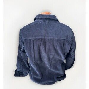 This Ben Sherman Men's Navy Corduroy Snap Jacket in size M is a stylish and preppy addition to any wardrobe. Made from cotton corduroy with a solid pattern, this shirt jacket features a collared neckline and snap closure for a classic look. Perfect for occasions like travel, parties, or casual wear, this jacket also includes subtle logo accents and is suitable for activities like walking or golf. Embrace a sophisticated yet relaxed style with this versatile Ben Sherman jacket.