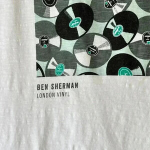 Ben Sherman Men's Records Graphic T-Shirt, White Graphic Tee, Size Small